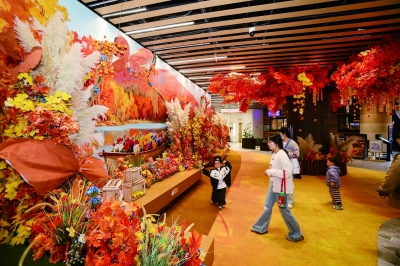 近日,南京水游城“梧桐之上”主题秋景打卡点亮相,巨型梧桐装置、成片芦苇与鱼灯星河交织,彩叶铺就浓郁秋意。在这里,户外秋景与商业空间相融,打造沉浸式打卡场景,为消费者带来兼具美感与趣味的消费体验,也让商业空间焕发秋日新魅力。