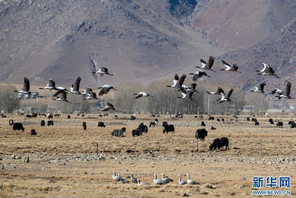 10月下旬开始,西藏拉萨河谷迎来大批越冬候鸟。黑颈鹤、斑头雁、赤麻鸭等候鸟们主要栖息在海拔2500米至5000米的高原、草甸、沼泽地带,在拉萨河谷,它们将待到来年三四月份。